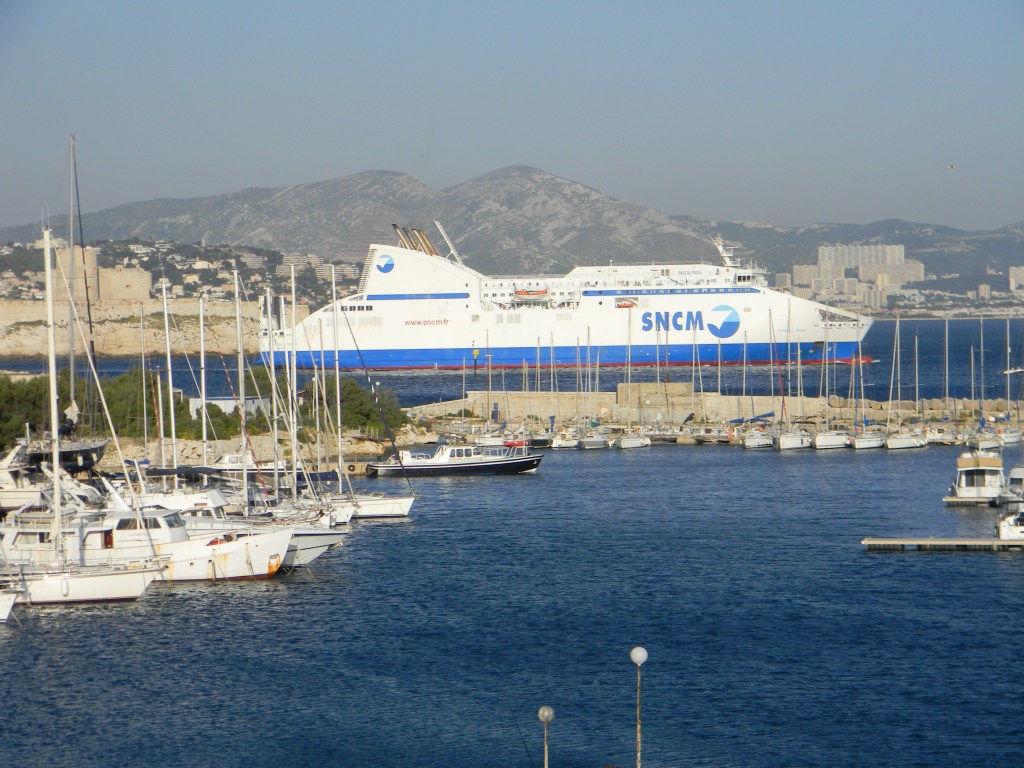⇒Het dagelijks ritme van de bootverbindingen met Corsica, Tunesië en Algerije. Flatgebouwen van cruiseschepen komen langs, een marineschip, rondvaartbootjes die hele schoolklassen dumpen voor de jaarlijkse ‘zeeklassen’.