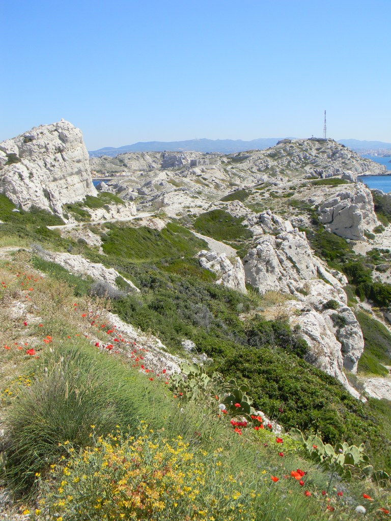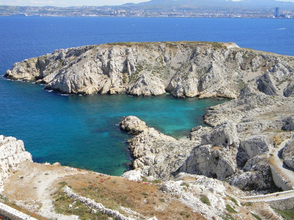 De agressieve mistral veegt de eilanden regelmatig schoon, zoals deze wind dat al eeuwen doet. Wind en zout hebben de archipel geboetseerd tot kale, blanke kalkrotsen, die al naar gelang het gedrag van goede huisvriend Zon reflecteren in het turquoise, azuurblauwe, staalblauwe, kobaltblauwe of ultramarijne water van de Middellandse zee. Als de zon op bezoek is, zijn de contrasten groot en is een zonnebril nodig om niet gek te worden van de reflectie. Bij bewolkte hemel is het eiland in een strenge en sober grijze jurk gehuld, opgeleukt met een voile van stuifzee. Toch is Frioul niet alleen die witte kiezel voor de rade van Marseille, waar niets groeit of leeft. Au contraire, de archipel herbergt juist opmerkelijke soorten bloemen die steeds zeldzamer worden op het vasteland. Zij kunnen leven dankzij of ondanks de zilte zee: op Frioul is de zee overal.
