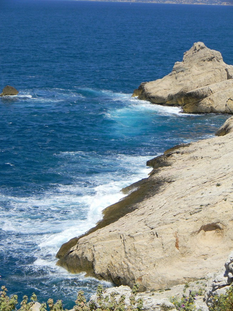 Ons huwelijk kan ook niet stuk, de storm haalt het beste uit ons boven! Een zoute traan van zoveel moois zoekt zijn weg over mijn door zon en zout aangeraakte gezicht. Een blonde pluk haar waait onhandig voorbij en kleeft erin vast. Mijn “je t’aime Frioul”, wordt meegenomen door de wind, bestemming onbekend…le vent l’emportera. En natuurlijk: ooit zullen de woorden op de vleugels van de wind terugkeren en zullen wij ze hier weer ontmoeten. De wind zal ons hier terugbrengen, j’en suis sûre!