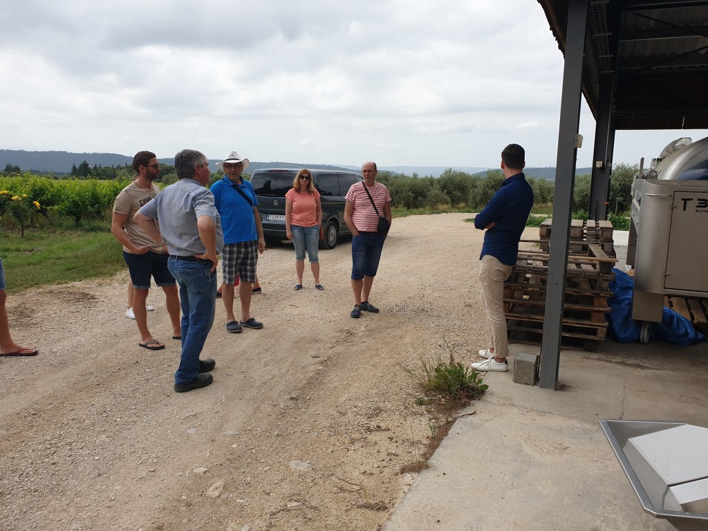 Buiten treffen de Slowaken voorbereidingen voor een picknick op het terrein, waarbij wij van harte uitgenodigd zijn, en weer is beleefd weigeren geen optie. Een enorme voorraad kaasjes, olijven, charcuterie, tapenades wordt uitgestald voor het proeflokaal. En uiteraard de twee gekoelde witte wijnen van Domaine Les Vadons. De wijnboer heeft andere verplichtingen. Hélas. Het afscheid nadert onherroepelijk…