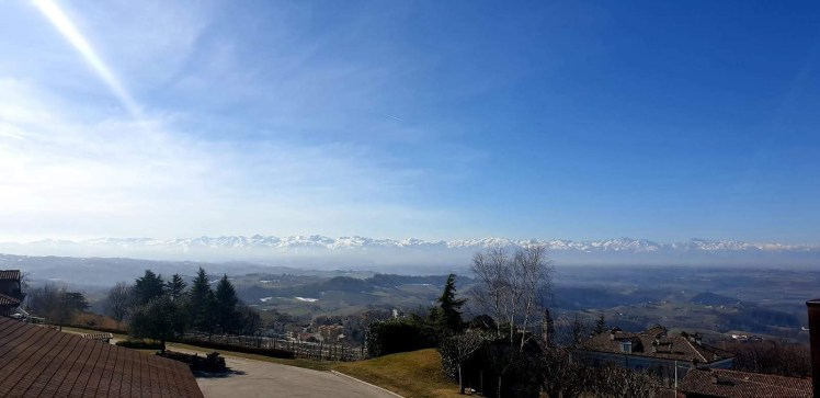 Eenmaal de stad uit, volgen landschappelijk saaie kilometers door de Po-vlakte: twee uur snelweg, rechttoe rechtaan. Een uitgelezen kans voor twee uur geografiecollege door zoonlief. Bij Alba verlaten we de snelweg en priemt het grillige silhouet van de Alpen dat zich aan de horizon vertoont, zich vast op het netvlies. Opeens zijn ze er, de bergen. De toppen besneeuwd. En ook het landschap dichterbij verandert, wordt heuvelig, soms pittig stijl. De weggetjes worden smaller.