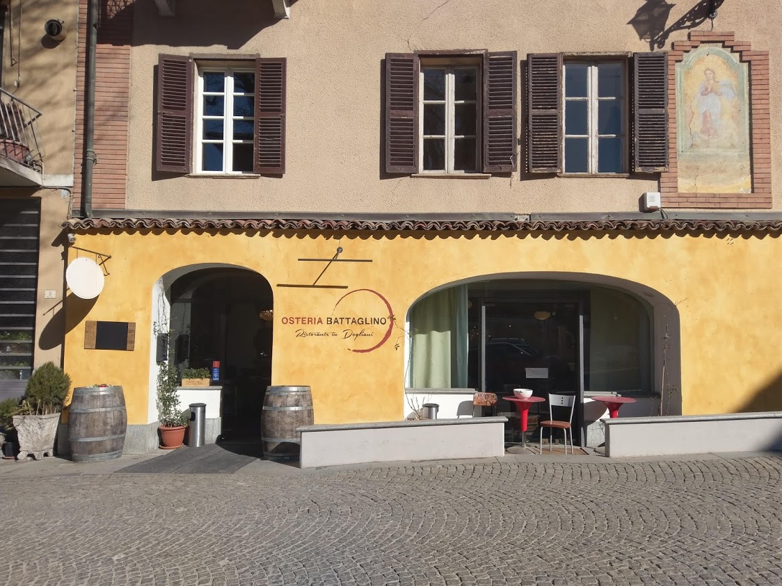 Ook in Dogliani is het vrij stil, maar na een speurtocht door de smalle straatjes vinden we Osteria Battaglino.