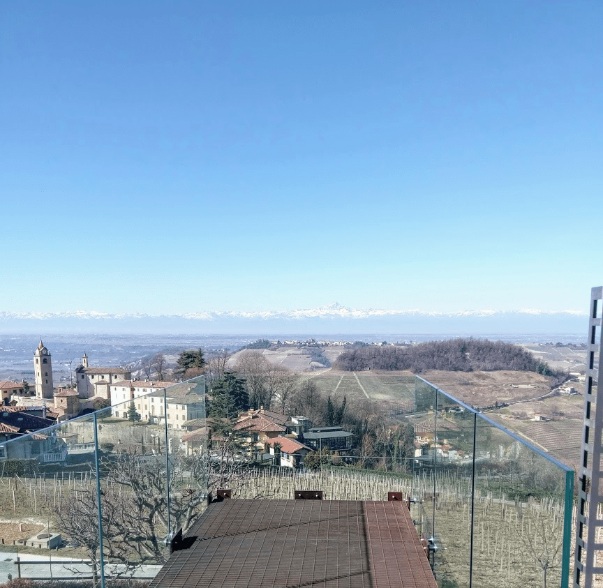 En dan maken we kennis met iets prachtigs: het panoramadak! Vanaf hier hebben we een totaaloverzicht over de regio. Fantastisch! Claudio geeft een zeer gedetailleerde toelichting over de grenzen van het Barologebied dat ons omringt. Geweldig!