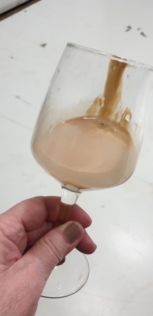 Wijn 9 is gemaakt van de muscat bleu die is geoogst in 2019. De basiswijn is versterkt met een wijnalcohol tot een portachtige wijn met een alcoholpercentage van 19%. De wijnalcohol wordt gestookt uit de schillen en pitten van de druiven die het jaar daarvoor zijn vergist. Dat is mooi, want daardoor smaakt de wijn louter naar muscat bleu. Deze wijn is nog piepjong, de alcohol knalt er prominent bovenuit en de muskaatgeur is daardoor bijna bedwelmend. Nog even met rust laten en geduld hebben, maar dan…