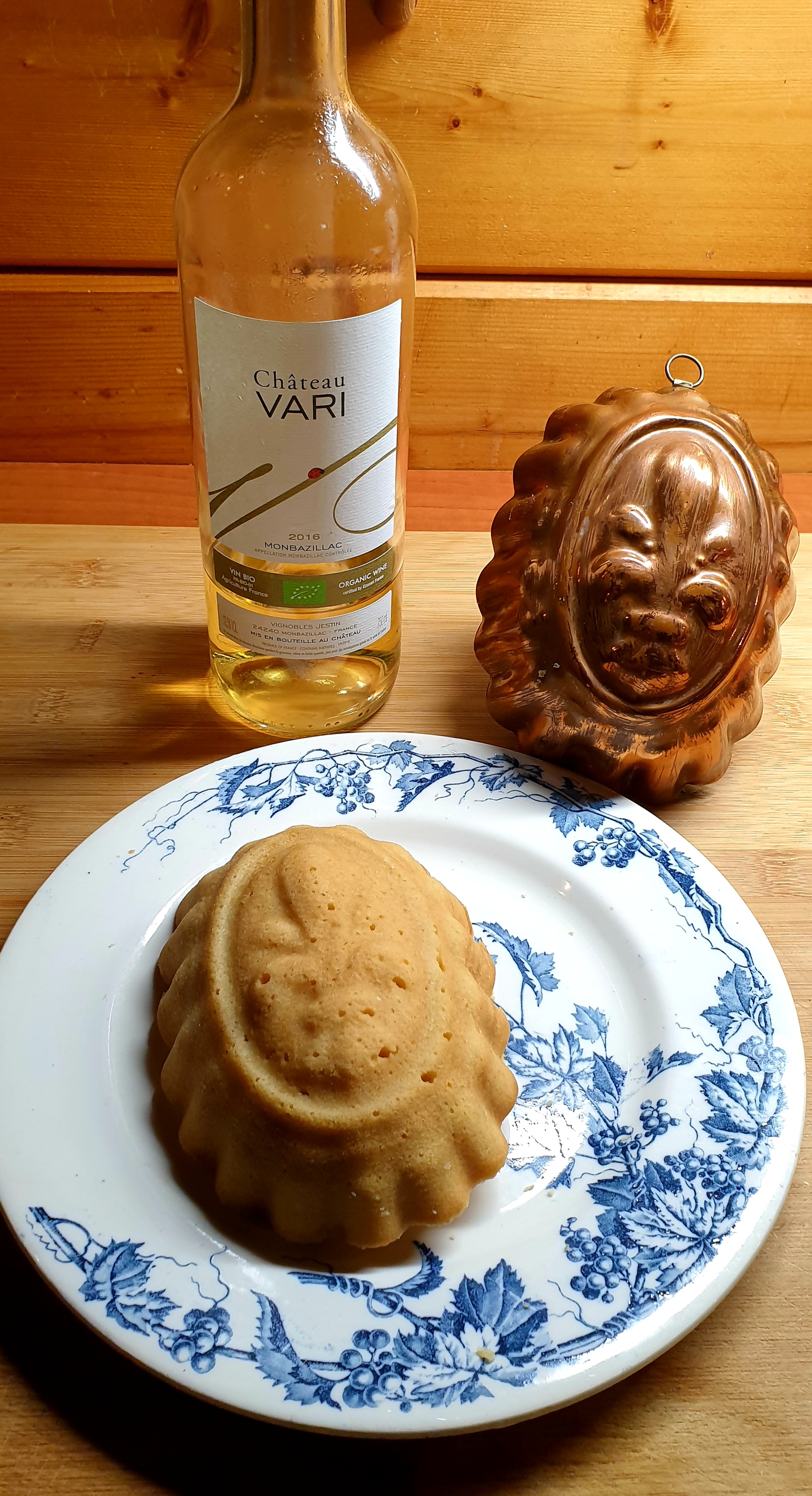 Wat met Muscat kan, moet ook met Monbazillac kunnen, was mijn gedachte. Beide wijnen zijn immers delicaat, natuurlijk zoet en aromatisch. Het was nog even spannend of het restje wijn nog voldoende was om zijn fijne aroma’s aan de cake te schenken. Dat is Bacchus verzoeken: heb je eindelijk een waardige bestemming gevonden als laatste rustplaats voor de vineuze relikten, is de hoeveelheid misschien niet genoeg. Een snelle ingredientencheck van de receptuur leerde dat er 15 cl Muscat nodig was. Met trillende handen schonk ik het restje wijn in de maatbeker. Pff, er was nét genoeg Monbazallac over.