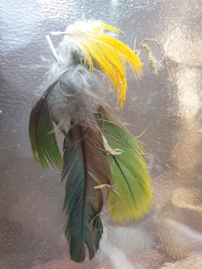 Opeens waren ze weg, pa en ma Mus en het kroost van het derde (!) legsel van 2021. Van het ene op het andere moment besloten dat het tijd was om uit te vliegen. Op de veranda is sinds medio augustus het legenestsyndroom letterlijk zicht- en hoorbaar. Geen grasjes, veertjes en takjes meer op het terras. Geen schreeuwend mussenkroost, niet meer bukken voor laagovervliegende mussenouders. Als stille getuigen van een uitgewoond huis, hangen slechts enkele strootjes uit het vlieggat van een ramvolle nestkast, dat werkelijk tot de nok gevuld blijft te zijn. Bij het ontleden blijkt het stel een voorkeur te hebben voor kleurrijke meubeltjes, we komen de meest uiteenlopende soorten en kleuren veren tegen.