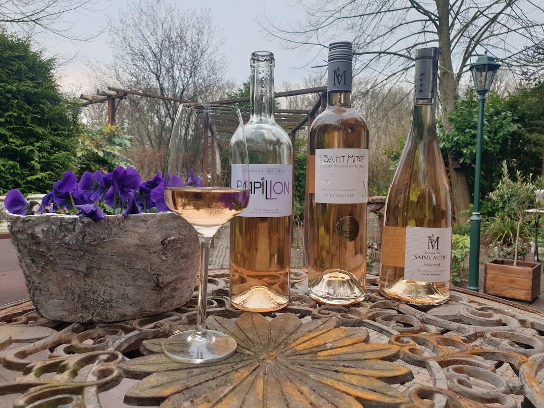 De laatste pas, de Col de l’Espigoulier, levert mooie televisiebeelden op vanuit de helikopter. De renners slingeren zich daar steeds dichter naar de zon. Bij het naderen van het eindpunt in Aubagne, ruik je bijna Marseille en de kust. Voel je dat de Mediterranée nadert en opeens gebeurt het: het roséverlangen demarreert uit het winterpeloton. Het is een fijne rosé uit het Massif de la Sainte- Baume die zich profileert, om het voorjaar officieel in te luiden en te proosten op de lente: rosé van Domaine Saint-Mitre uit Saint Maximim la Sainte-Baume.