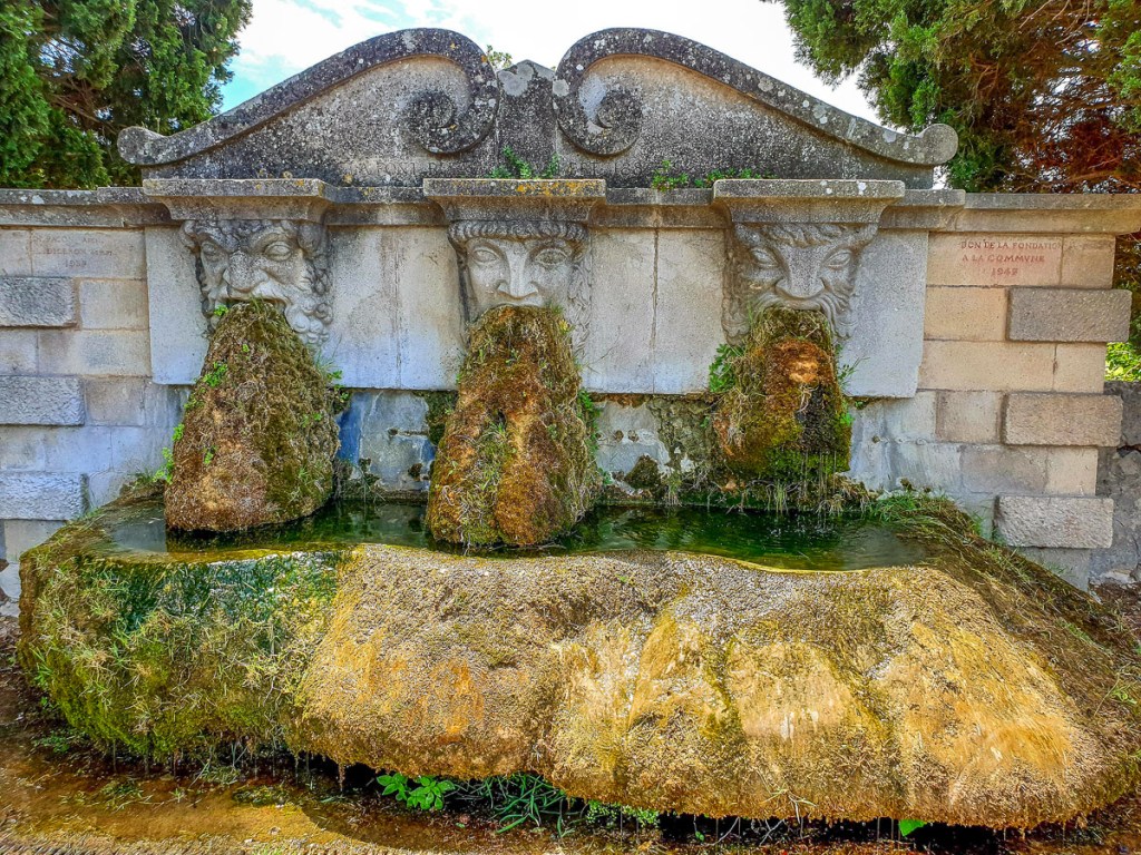 Niet ver van het kasteel is er de protestantse tempel, een historisch monument. Lourmarin was lang een enclave van de hugenoten. Enkele meters verder dan deze kerk, zie je la Fontaine aux Trois Masques. Volgens de gevierde Provençaalse romancier Henri Bosco (1885-1976) vertegenwoordigen die drie hoofden de natuurlijke elementen van de omgeving: de Rhône, La Durance en de Luberon. Een ander idee is dat je kijkt naar Neptunes (de god van het water), Apollo (de god van de schoonheid) en Pan (de god van de kuddes en de herders). Tja, die laatste gedachte zou prima kunnen. Het water van het riviertje de Calavon, dat vanuit de Luberon zijn weg naar beneden zoekt, is niet ver weg van de fontein. En schoonheid, ik zei het al: bijna alles is hier mooi, dat had Apollo destijds al goed gezien. De kuddes van Pan zien we terug op de grote prairie tussen de fontein en het kasteel. Op Quatorze Juillet of op het fète votive eind augustus verenigen zich bewoners en toeristen op de prairie voor een sprookjesachtig vuurwerk.