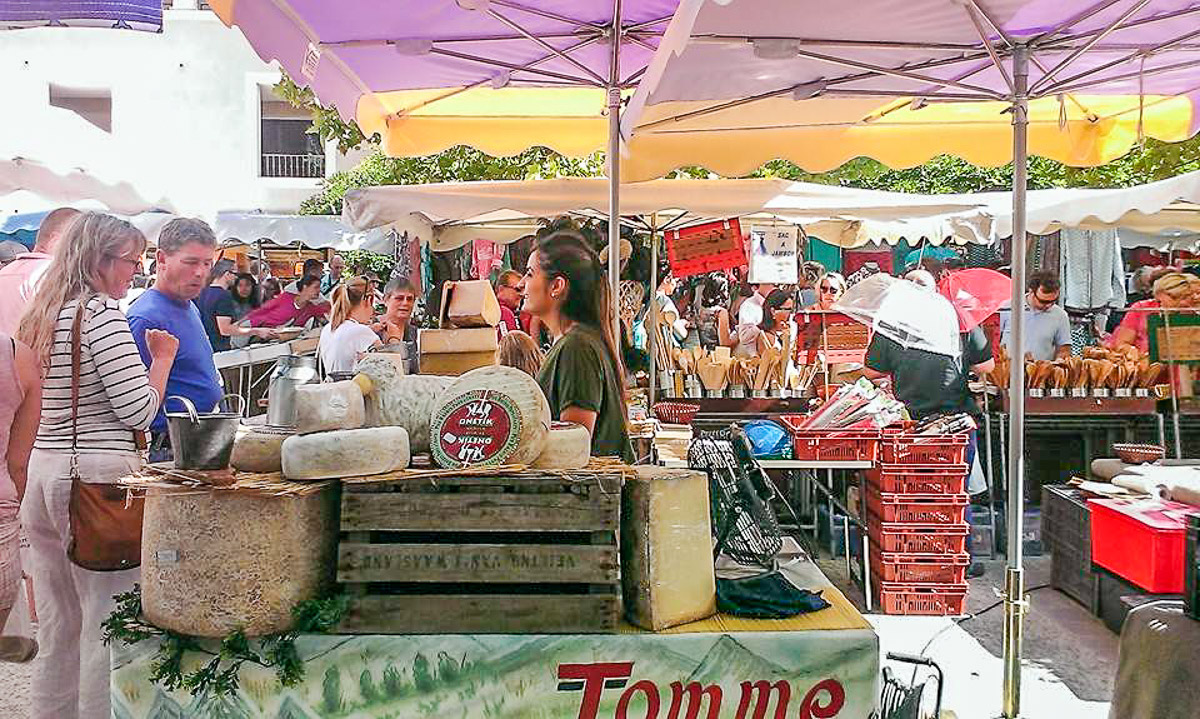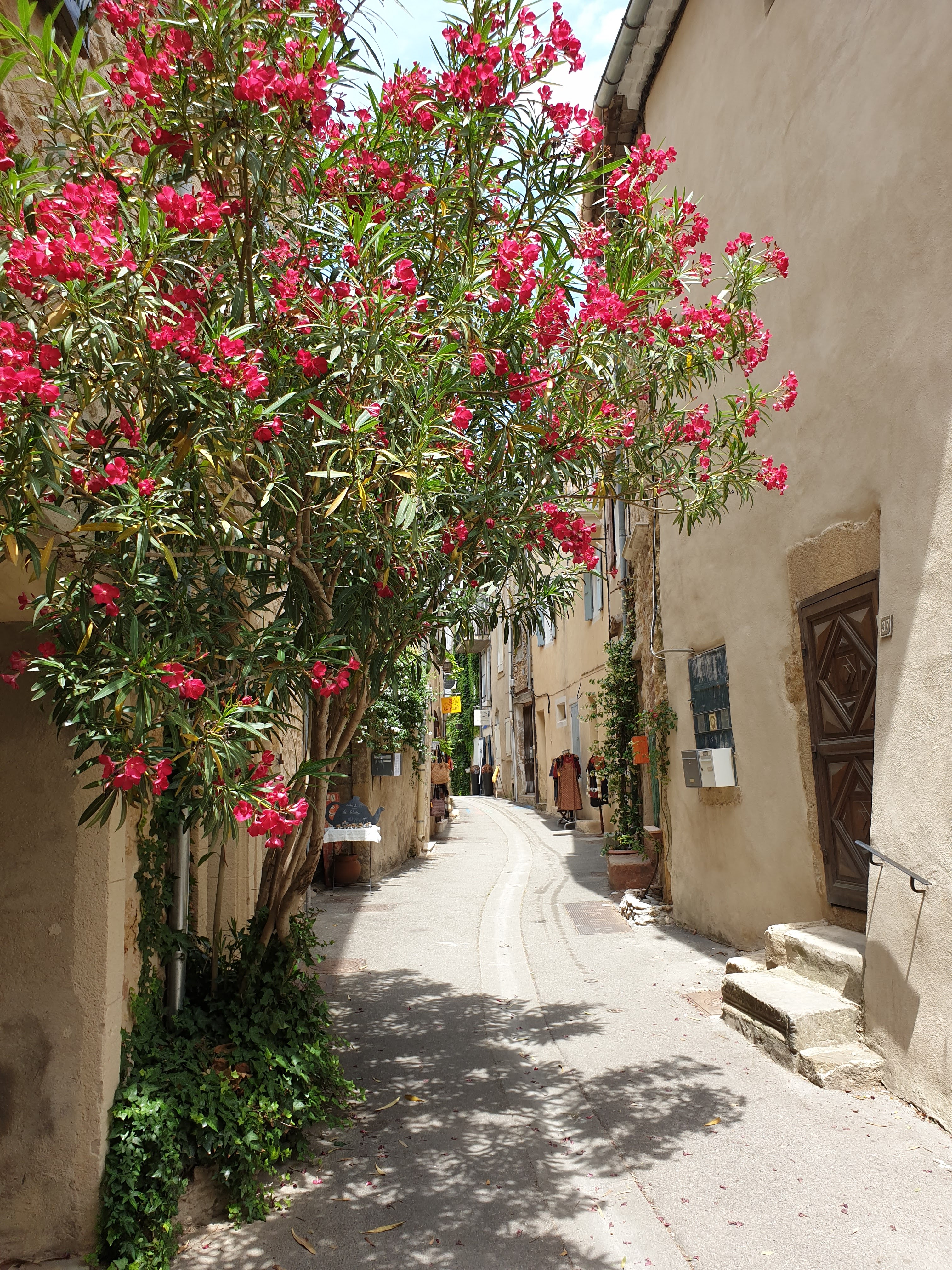 Op vrijdagochtend is er de zeer druk bezochte Provençaalse markt, in de rustieke straatjes. Volop verse groenten en fruit, kruiden en specerijen in warme Provençaalse kleuren, olijven, rieten manden, 1001 kazen, bohemien jurken, lokale specialiteiten. Kom vroeg, vooral in het hoogseizoen, tenzij je zin hebt om ‘over de hoofden’ te willen lopen. En altijd is er dat romantische kasteel op de achtergrond. Een decor dat zelfs de harten van de meest sfeerongevoelige onder ons, doet smelten.