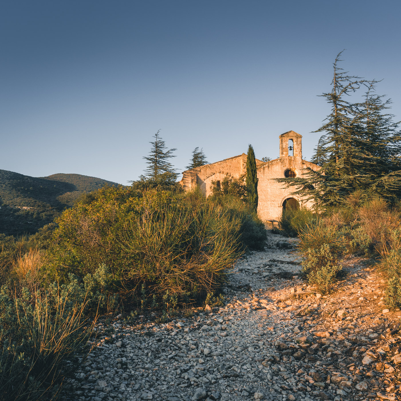 Buiten het dorp, hoger op de flanken van de Luberon, kun je tussen het struikgewas La Chapelle de l’Ermitage ontwaren. Een kleine kapel die een bedevaartsoord en meditatieoord is geworden. Vanuit het dorp is er een mooie wandeling naar deze kapel. Je hebt er een subliem uitzicht over de vallei van de Durance. Voor liefhebbers van bergwandelen kun je vanaf hier ook aanhaken op de wandelroute naar de top van Mourre Nègre (1.125 meter).